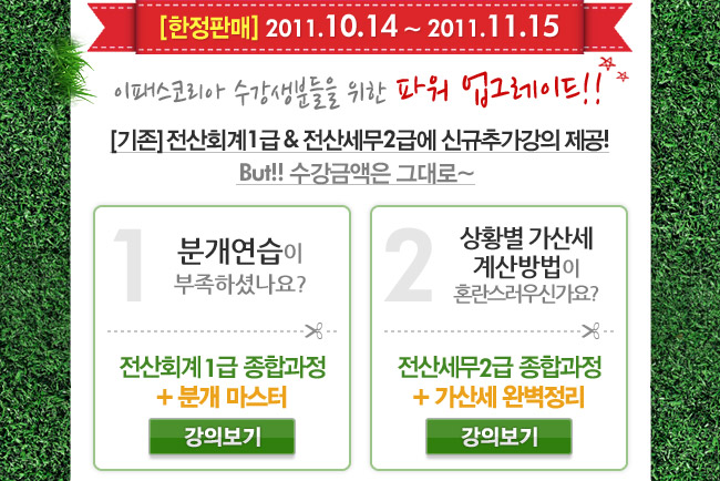 로그인 | 회원가입 | 이벤트 | 마이페이지 | 내 강의실 | 온라인서점 | 내일배움 | 커뮤니티 | 고객 센터 공지사항 업데이트안내 기출문제복원 취업정보 할인쿠폰받기 Best 후기 이벤트안내 무료동영상 CFA 캠페인 평생교육이용권