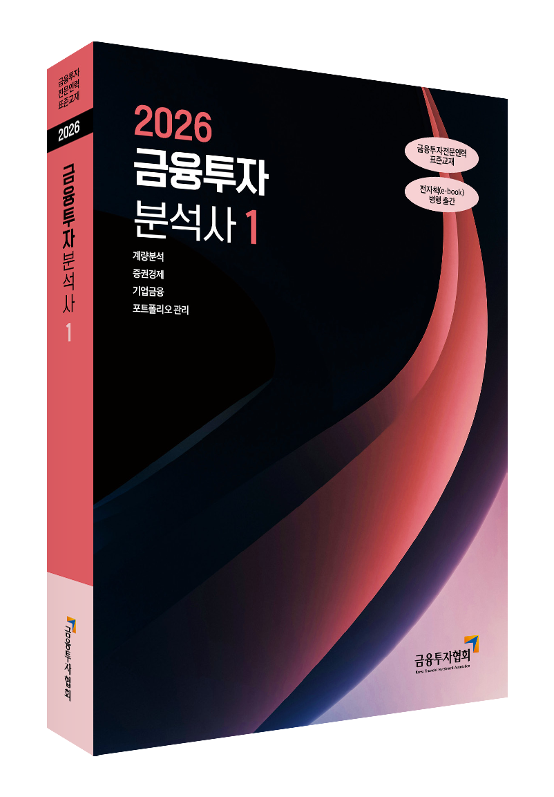 온라인서점국제자격도서 - CFA - FRM - CAIA - CAMS금융투자자격도서 - 증권금융기초입문 - 펀드투자권유대행인 - 증권투자권유대행인 - 펀드투자권유자문인력 - 증권투자권유자문인력 - 파생상품투자권유자문인력 - 투자자산운용사 - 금융투자분석사 - 재무위험관리사은행/무역/보험자격도서 - 자산관리사(은행 FP) - 은행텔러 - 외환전문역 - 국제무역사/무역영어 - 원산지관리사 - AFPK - CFP - 보세사 - 물류관리사 - 유통관리사 2급 - 신용분석사 - TPAC금융일반도서 - 금융일반세무회계자격도서 - 전산세무/회계 - 세무회계 - TAT/FAT - 재경/회계관리사 - IFRS관리사 - 세무/회계 실무기술자격증도서 - 공조냉동기계 - 정보통신 - 실내건축 - 자동차정비 - 용접 - 에너지관리 - 소방설비 - 식물보호 - 산업위생관리 - 산업안전 - 건설안전 - 산업안전지도사 - 전기 - 가스 - 수질환경 - 컴퓨터활용능력한국사도서 - 한국사능력검정시험소방승진 - 소방전술 - 소방공무원법 - 소방법령II - 위험물안전관리법 - 다중이용업소법 - 행정법 - 봉투 모의고사 - 가산점 고객센터 교육문의 1600-0522 평일 09:00~21:00 토/일요일 09:00~18:00 담당자별 내선보기 온라인서점 바로가기 강의 교재 구매홈>온라인서점>금융투자자격도서 - 신청하신 교육과정의 교재를 구매하 실 수 있습니다. 2026 금융투자분석사 1 편저 : 금융투자교육원 (http://www.kifin.or.kr/) 발행처 : 한국금융투자협회 (http://license.kofia.or.kr/) 출판사: 금융투자교육원|출판년도: 2026년 27,000원 27,000원 0원 구매하기 장바구니담기 2026 금융투자분석사 2 편저 : 금융투자교육원 (http://www.kifin.or.kr/) 발행처 : 한국금융투자협회 (http://license.kofia.or.kr/) 출판사: 금융투자교육원|출판년도: 2026년 25,000원 25,000원 0원 구매하기 장바구니담기 2026 금융투자분석사 3 편저 : 금융투자교육원 (http://www.kifin.or.kr/) 발행처 : 한국금융투자협회 (http://license.kofia.or.kr/) 출판사: 금융투자교육원|출판년도: 2026년 20,500원 20,500원 0원 구매하기 장바구니담기 2026 금융투자분석사 4 편저 : 금융투자교육원 (http://www.kifin.or.kr/) 발행처 : 한국금융투자협회 (http://license.kofia.or.kr/) 출판사: 금융투자교육원|출판년도: 2026년 27,000원 27,000원 0원 구매하기 장바구니담기 < 11 12 13 14 15 >